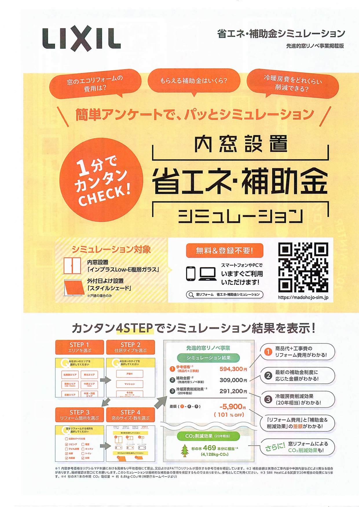 青森フクシンホームケアーズでは、補助金の対象工事者となる為の登録事業者登録がすでに完了しておりますので、内窓(インプラス)等の高断熱サッシの対象工事をご依頼いただくと制度・補助金の対象になります。